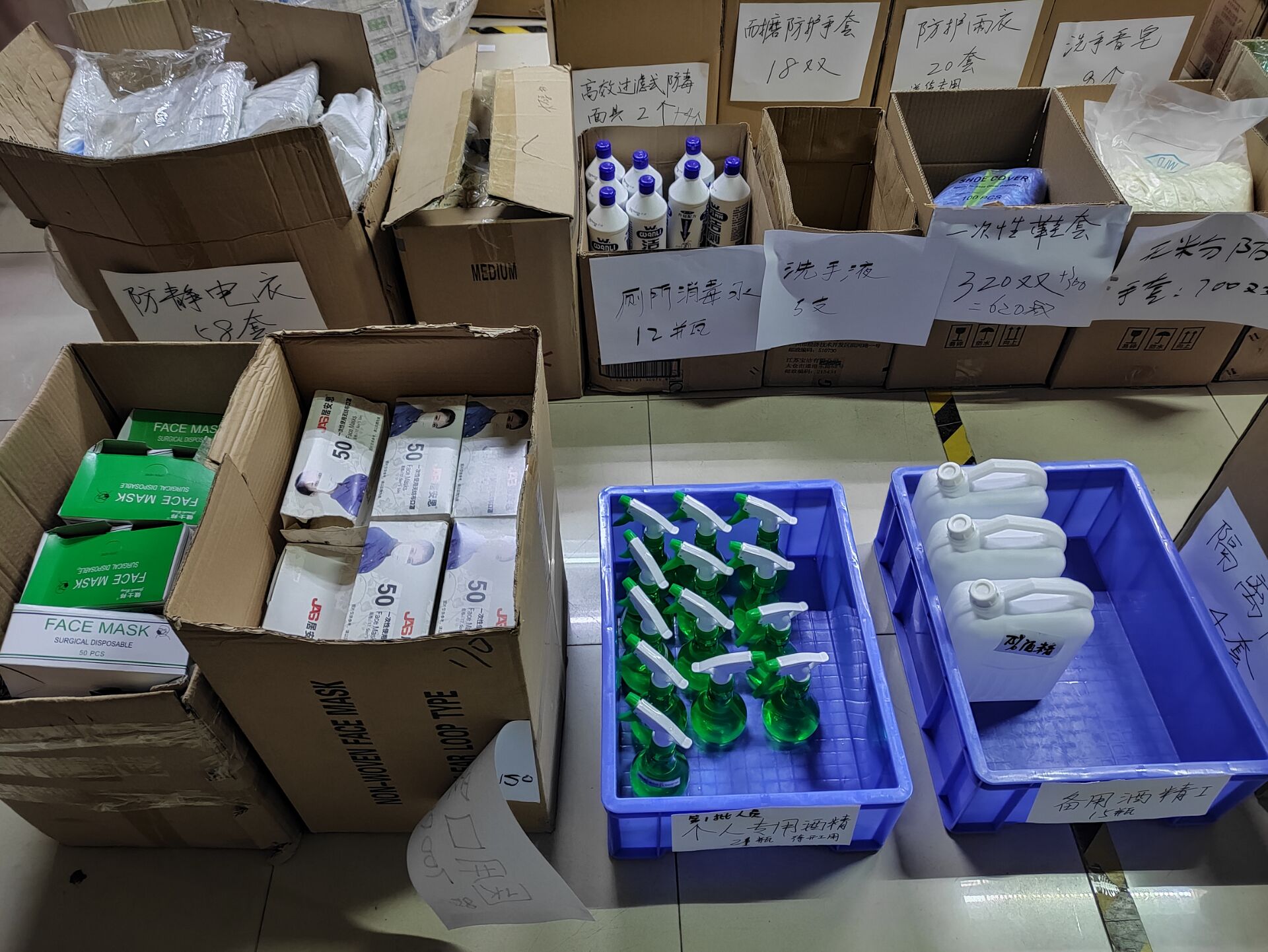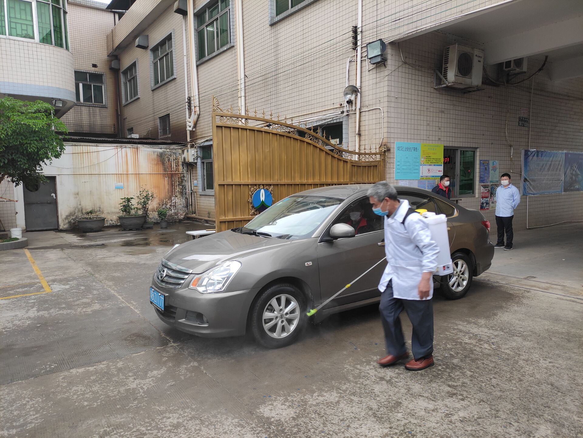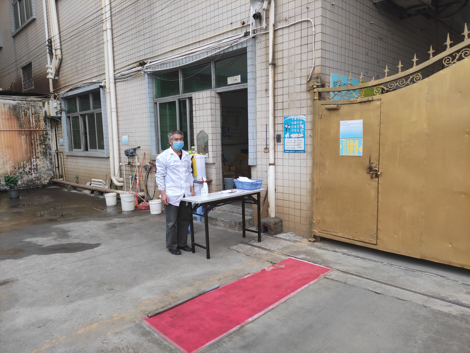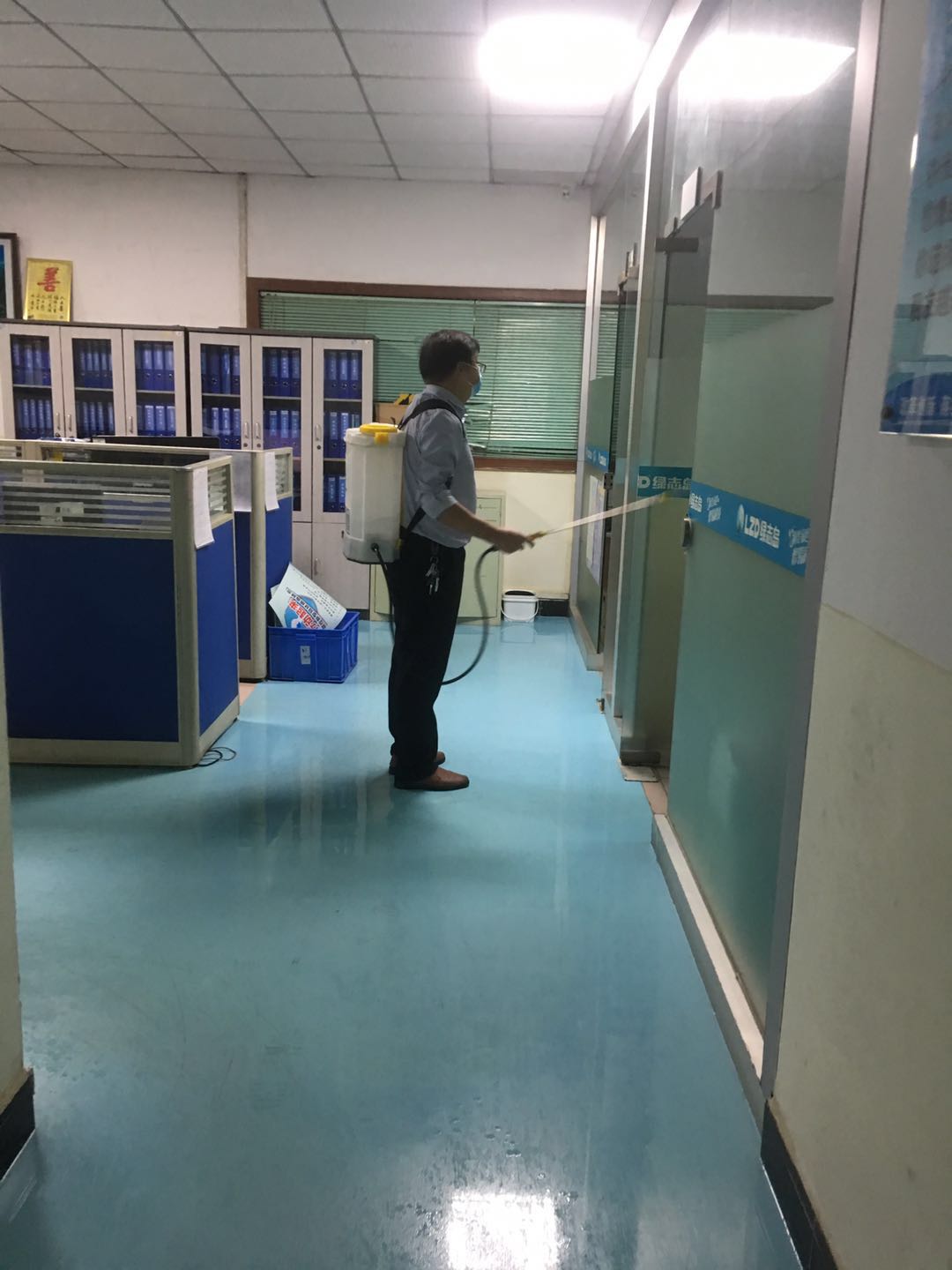 賴總對(duì)車間每個(gè)角落用84消毒水進(jìn)行消毒