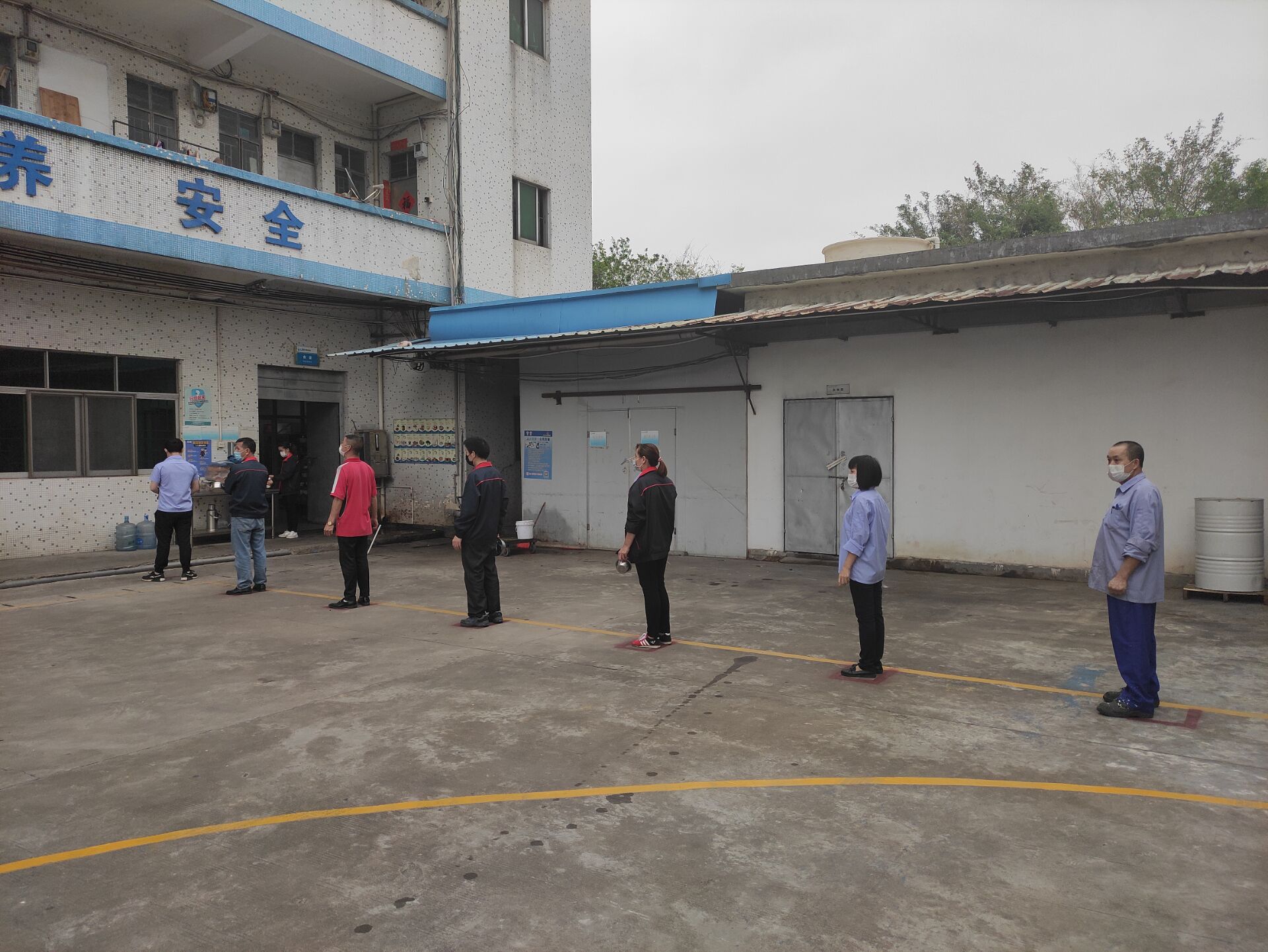 周一早會(huì)盧經(jīng)理在室外給上崗人員宣導(dǎo)防疫知識(shí)