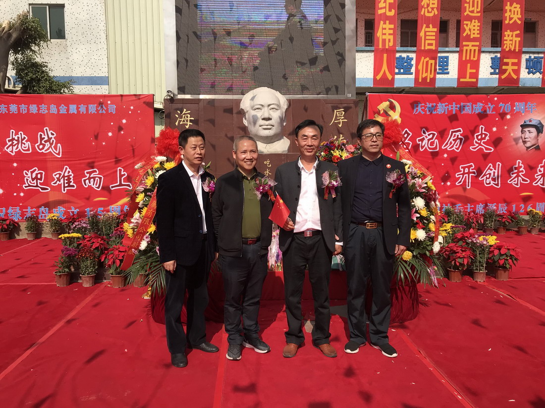 綠志島董事長朱祖生先生帶領我們喊——中國共產黨萬歲!人民萬歲!
